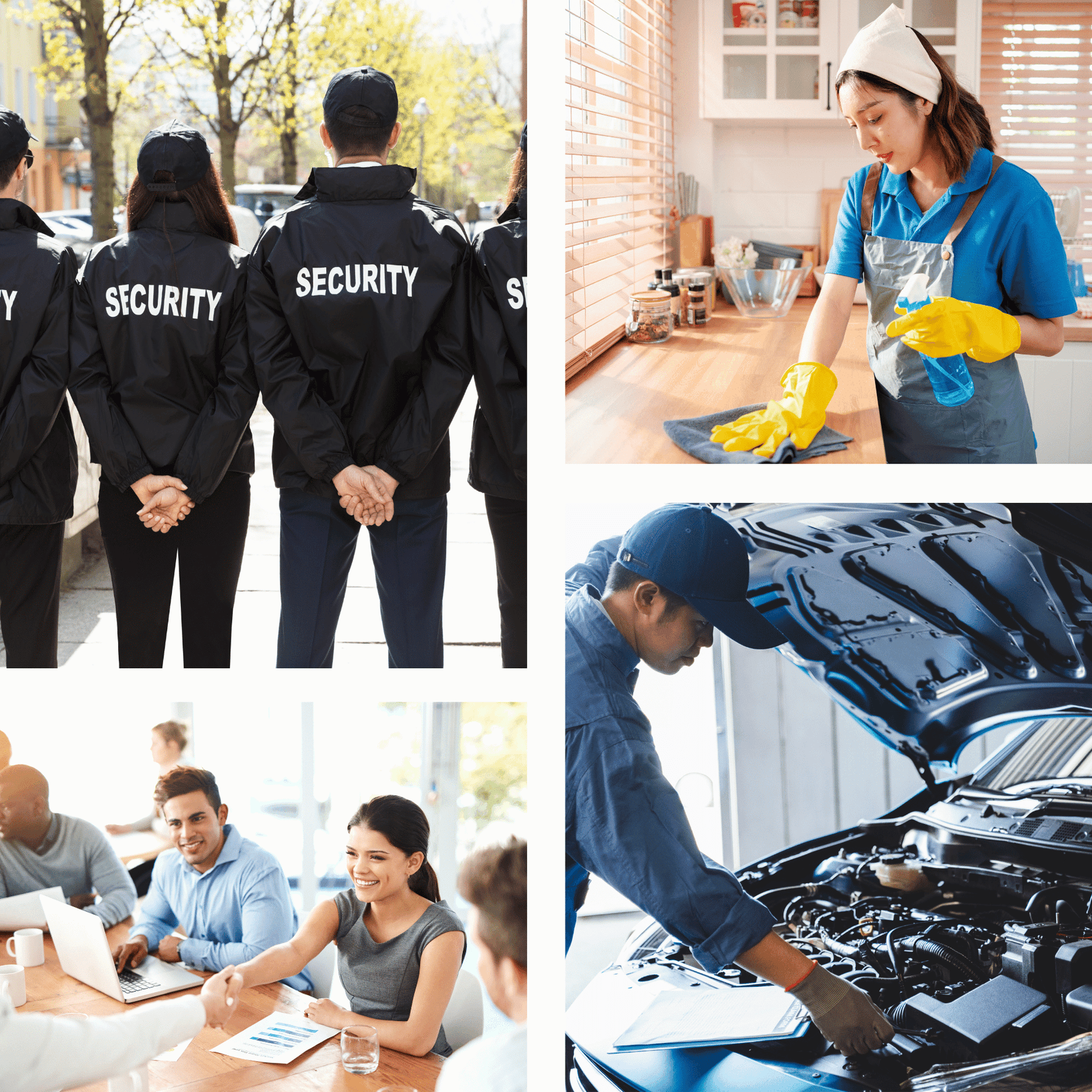 We offer a wide range of services including security personnel, home and office repairs, skilled workers for various tasks, professional cleaning services, and resale of used appliances and furniture.